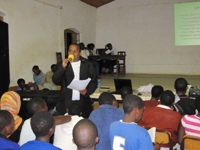 By Isaac Lema, Tanzania, (January 2015)- A few days before graduating for my first university degree, I received a phone call from Fr. Aidan Ulungi telling me that we needed to meet and discuss Universal Chastity Education (UCE). At that time, I did not know anything about UCE. On the 17th of October 2008, one day before our graduation, we had a meeting. It included, Fr. Urungi, myself, Leonard, and Bathsheba. In that meeting, Fr. Ulungi explained to us about his trip to Uganda, where he visited the UCE Uganda program. I became very interested in the work UCE was doing. After serving God in college through various ministries, I saw it as an opportunity to serve God on another level. Together, we agreed to start UCE in Tanzania, and I dedicated my time and energy in Dar es Salaam to register UCE as a non-governmental organization. Fr. Aidan volunteered to pay for my transport and the registration cost. All of us pledged to be volunteers in spreading the chastity message, and take no salary. We would have to find jobs to support ourselves while spreading the Good News.